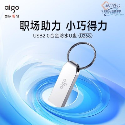 爱国者(aigo)16GB USB2.0 U盘 U268迷你款 银色 金属投标 车载U盘 办公学习通用优盘