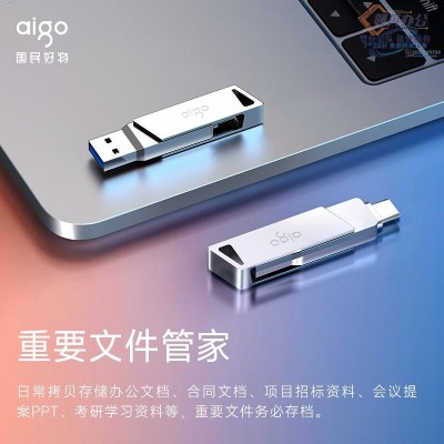 爱国者(aigo)128GB Type-C手机U盘 U350 高速两用 双接口U盘 USB3.2 OTG 安卓苹果笔记本电脑通用优盘